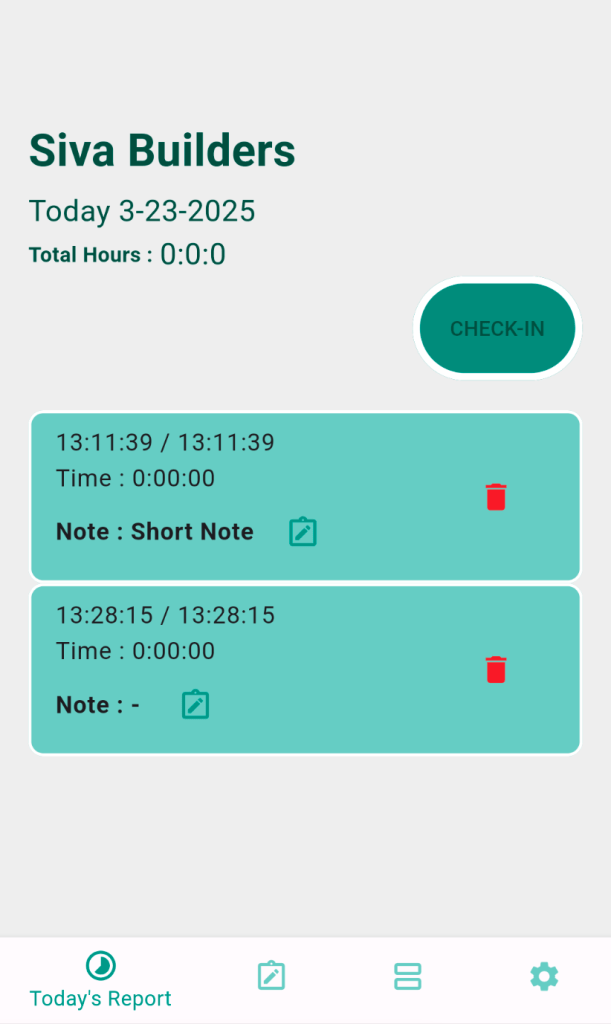 About: A time management tool for managing work check in and checkout time for each company. Report shows total hours worked based on company.